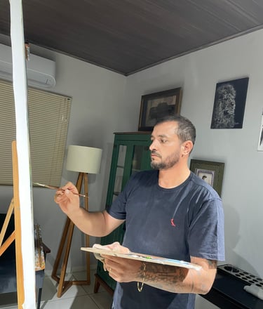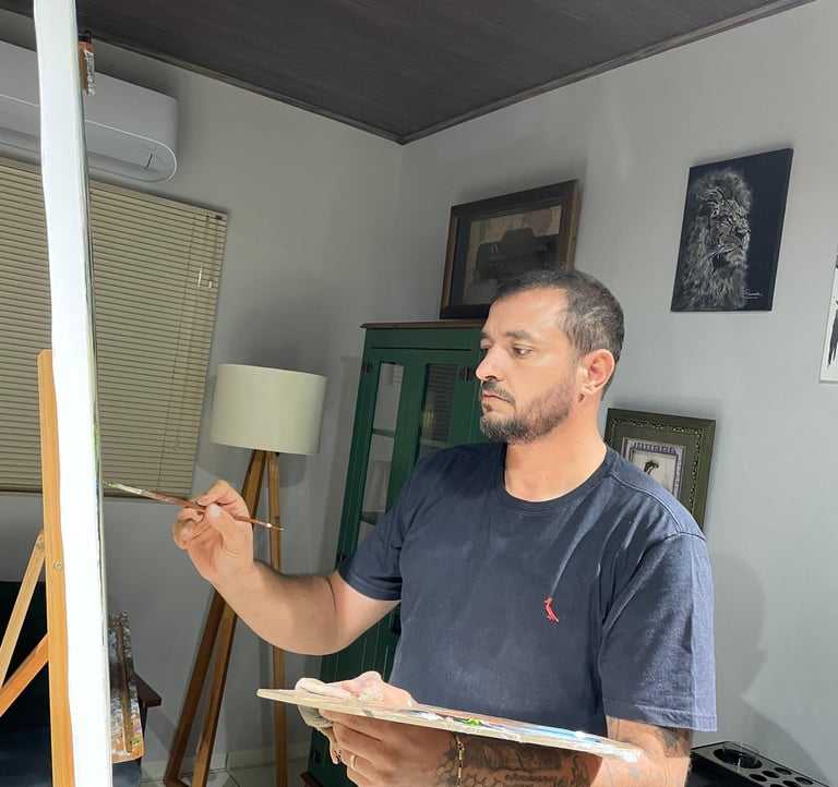 Sou Everton Pasinato, natural de Colorado, Paraná, e cultivo minha paixão pela arte desde a infância, começando com entalhes e modelagem. Há cerca de cinco anos, encontrei na tatuagem uma poderosa forma de expressão, dedicando-me a eternizar histórias na pele de outras pessoas. De maneira inesperada, a pintura em telas também entrou na minha vida, tornando-se mais uma linguagem para traduzir o que sinto. O Studio Everton Pasinato nasceu dessa trajetória de amor, sendo o espaço que criei para que arte, autenticidade e sentimento se encontrem.